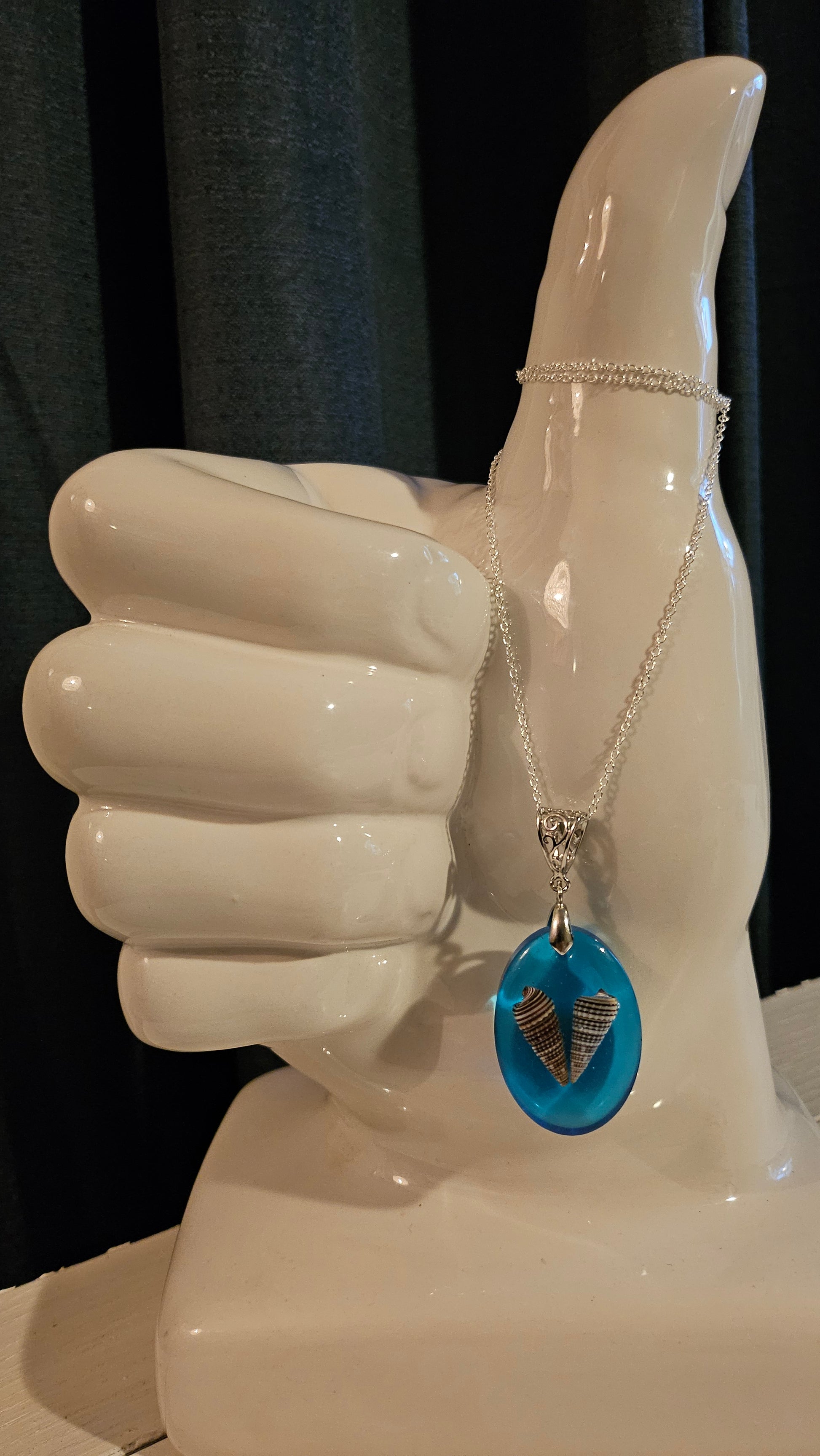 Oval Double Shell Pendant (Handmade with Resin)