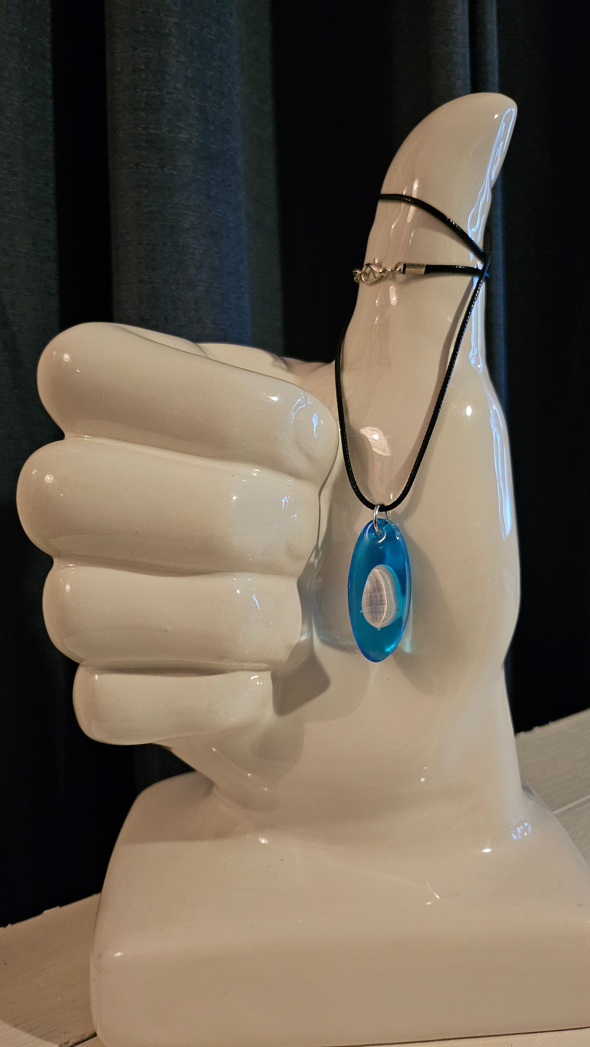 Handmade pendant with resin and a sweet, tiny seashell. One-of-a-kind, unique, wearable piece on 18-inch black leather necklace with lobster clasp.